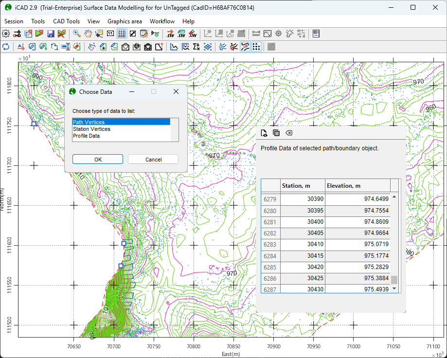 Ability to extract and export alignment and profile data from geomoetric elements, with out leaving the iCAD environmetn.
