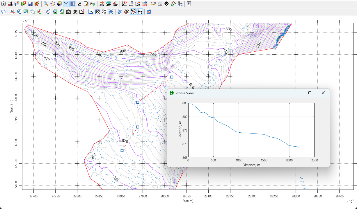 Alignments can be created with in the interface, or imported from AutoCAD. Then users can visualize profile data, export the profile data.