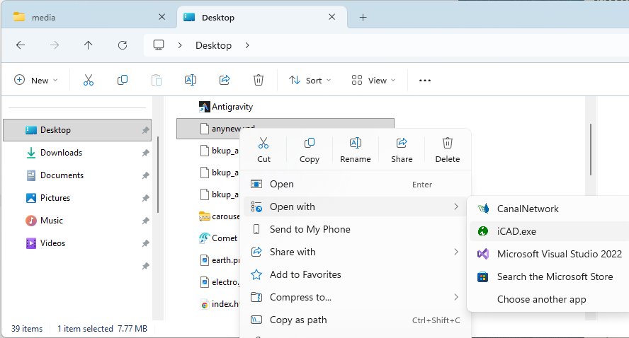 Open Withand select iCAD. This will open the contents of the file in iCAD interface.
