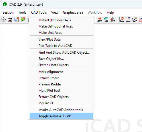iCAD workspace normally opens with the main graphics interface empty. It is used to display and interact with sessions.