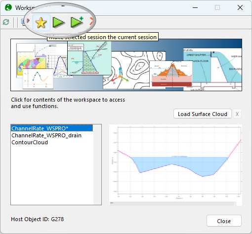 From the Workspace Manager dialog, select one of the sessions, and click on the Star icon on the top to make it the current or active session.