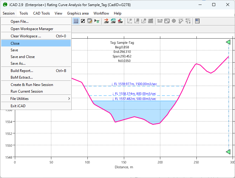 A Session are instances of Modules that are used to solve a given task. E.g., the design of one specific retaining wall, or the topography of a head work area.
